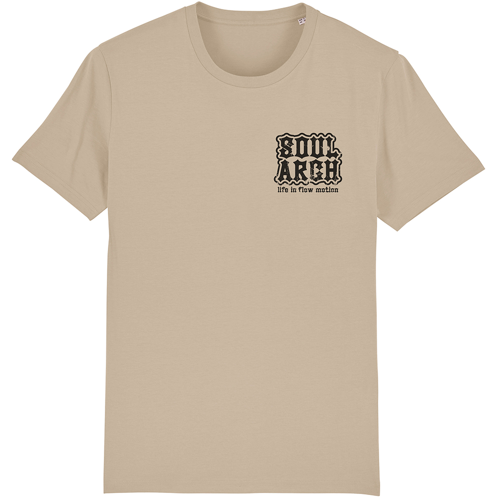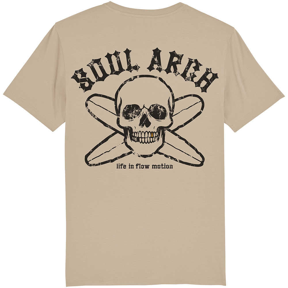 Skull & Cross Boards design printed on a Desert Dust 100% organic cotton and ethical t-shirt. Printed with a Black eco-friendy ink for a nice soft feel.
